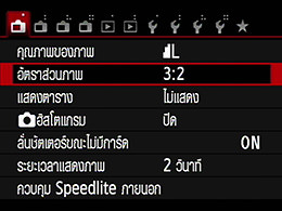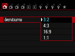 เลือก “อัตราส่วนภาพ” จากหน้าจอเมนู