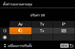 การตั้งค่าวงแหวนควบคุม ฟังก์ชั่นต่างๆ สามารถกำหนดให้กับโหมดการเปิดรับแสงแต่ละโหมดได้