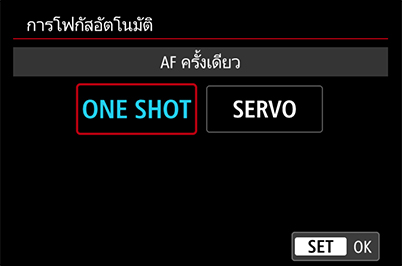 2. ตั้งค่าการควบคุม AF ไปที่ ‘ONE SHOT’