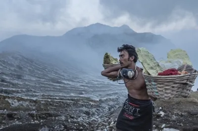 ผมคิดว่าเป็นหนึ่งในภาพถ่ายจากภูเขาไฟคาวาอีเจี้ยน ทางตะวันออกของชวากลาง เป็นงานบันทึกข้อมูลคนงานในเหมืองแร่กำมะถันบริเวณปล่องภูเขาไฟ ที่ต้องแบกกำมะถันหนัก 80 กก. จากตีนเขาขึ้นไปที่ปล่องภูเขาไฟ (และแบกกลับลงมา) เราต้องเดินทางเท้าเป็นเวลาสี่ชั่วโมงท่ามกลางควันกำมะถันที่เป็นพิเศษ ซึ่งเป็นงานหนักมากๆ เราออกเดินทางตอนตีสาม โดยเดินเท้าสองชั่วโมงขึ้นไปที่ปล่องภูเขาไฟ เพื่อจับภาพพระอาทิตย์ขึ้น รวมถึงสีที่ตัดกันระหว่างทะเลสาบเงียบสงบสีคราม บริเวณปล่องภูเขาไฟ ผสมผสานกับกำมะถันสีเหลืองที่พวยพุ่งออกมา เป็นช็อตที่สะดุดตามาก