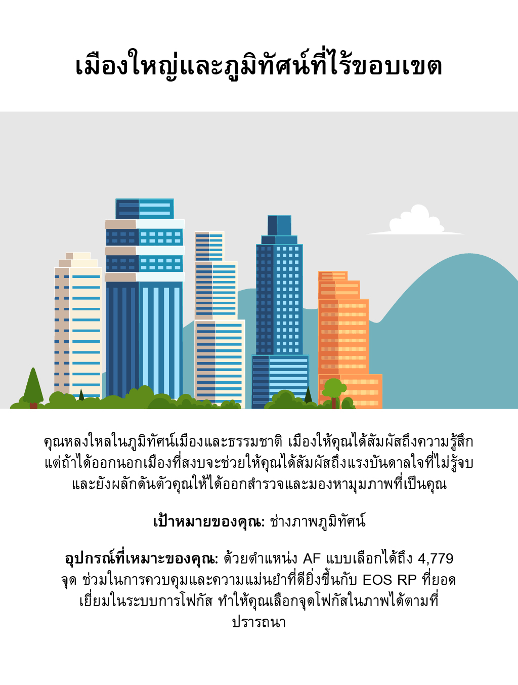 อุปกรณ์ที่เหมาะของคุณ: กล้อง EOS RP ที่สามารถโฟกัสได้แม้ว่าองค์ประกอบของคุณจะเป็นจุดเล็กๆ ของวัตถุที่วางอยู่บนขอบภาพ