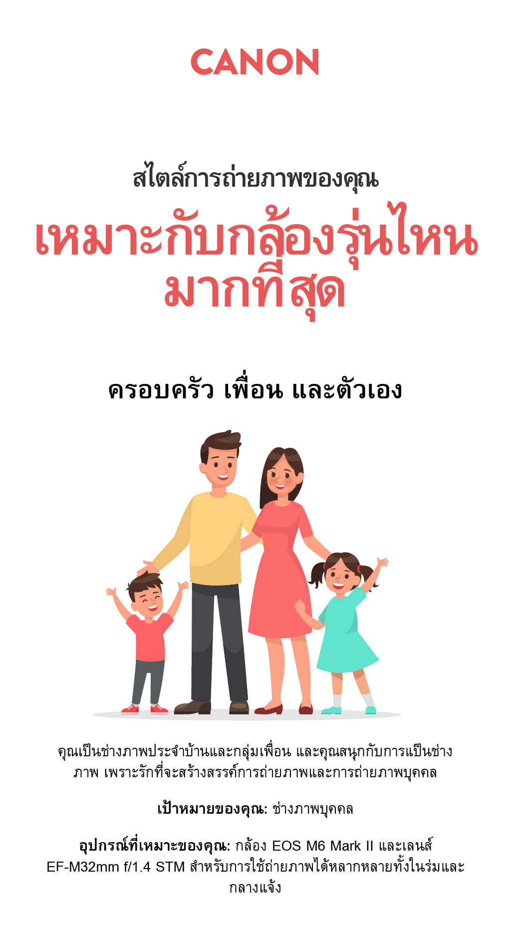 ค้นหาว่ากล้อง Canon รุ่นใดที่เหมาะกับสไตล์การถ่ายภาพของคุณ เพื่อช่วยให้คุณสร้างเนื้อหาที่ดีที่สุด