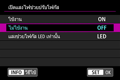 หาการตั้งค่านี้ได้ที่: เมนูโฟกัสอัตโนมัติ/ เมนู SHOOT