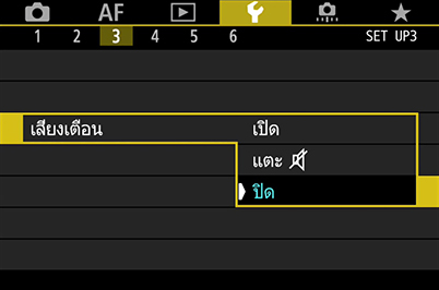 เคล็ดลับ: ช่างภาพบางคนอาจรู้สึกว่าเสียงเตือนเมื่อตัวแบบอยู่ในโฟกัสนั้นช่วยจับจังหวะในการถ่ายภาพ หากคุณเป็นช่างภาพลักษณะนี้และฉากไม่ต้องการความเงียบเป็นพิเศษ ลองตัวเลือกตรงกลางซึ่งจะปิดใช้งานเสียงเตือนเฉพาะสำหรับการสั่งงานด้วยระบบสัมผัส