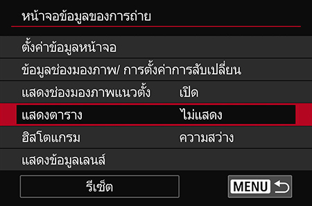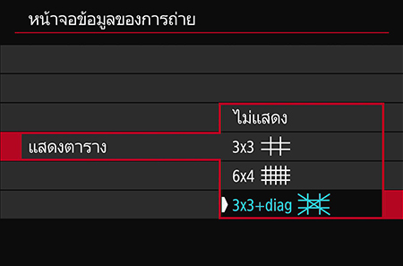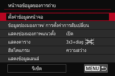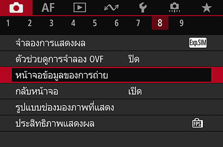 ขั้นตอนที่ 1: ไปที่เมนูสีแดง หาและเลือกเมนู “หน้าจอข้อมูลของการถ่าย”