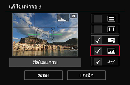 ขั้นตอนที่ 4: แตะหรือกดปุ่ม “SET” เพื่อเลือกช่องที่อยู่ข้างไอคอนฮิสโตแกรม