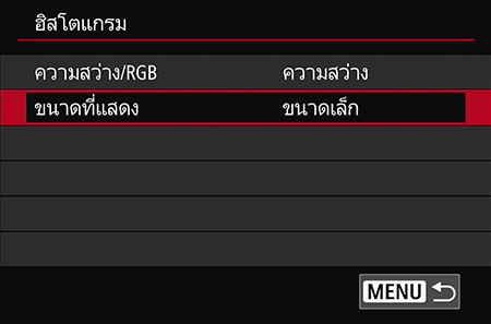 เมนู “ฮิสโตแกรม” ช่วยให้คุณสามารถเปลี่ยนขนาดของฮิสโตแกรมและแสดงฮิสโตแกรมแบบ RGB แทนได้