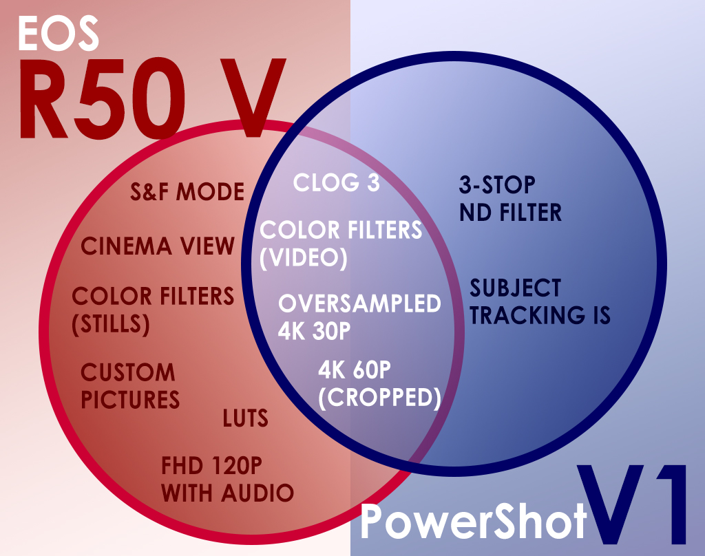 ทั้ง PowerShot V1 และ EOS R50 V พร้อมเลนส์คิท RF-S14-30mm f/4-6.3 IS STM PZ มีช่วงโฟกัสครอบคลุมตั้งแต่ระยะมุมกว้างอัลตร้าไวด์ไปจนถึงระยะมาตรฐาน ช่วงกว้างเท่านี้เพียงพอสำหรับการถ่ายภาพเซลฟี่ วิดีโอแบบเซลฟี่ วล็อก และภาพผลิตภัณฑ์แบบโคลสอัพ รวมถึงการถ่ายภาพทั่วไป