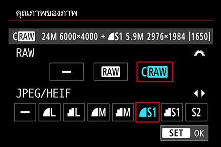 คุณสามารถเลือกบันทึกแบบ RAW เท่านั้น, JPEG/HEIF เท่านั้น หรือ RAW + JPEG/HEIF แต่ก็ยังมีตัวเลือกมากมายสำหรับคุณภาพการบันทึก ซึ่งคุณสามารถเลือกได้ตามต้องการ