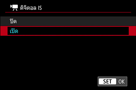 ที่: เมนูสีแดง → โหมด IS (ระบบป้องกันภาพสั่นไหว) → ดิจิตอล IS