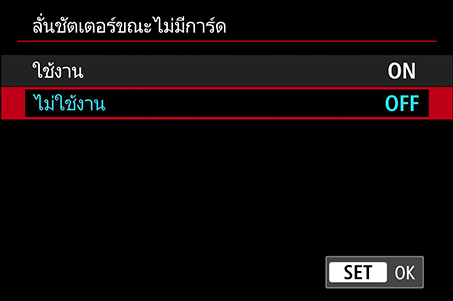 ที่: เมนูสีแดง → “ลั่นชัตเตอร์ขณะไม่มีการ์ด”