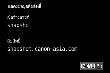เมื่อใส่ชื่อของคุณในเมนู “ข้อมูลลิขสิทธิ์” ข้อมูลจะถูกฝังลงไปในข้อมูล EXIF (เมทาดาตา) ของภาพ วิธีนี้จะช่วยระบุตัวคุณว่าเป็นผู้ถ่ายภาพ หากนำภาพไปแบ่งปันหรือใช้ที่อื่น