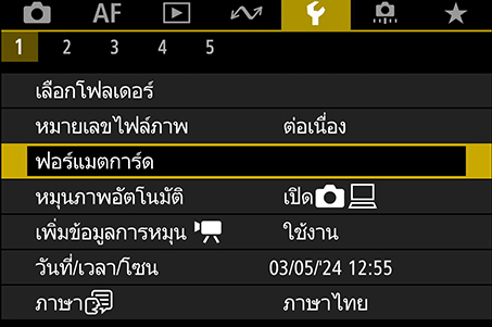 ที่: เมนูสีเหลือง → “ฟอร์แมตการ์ด”