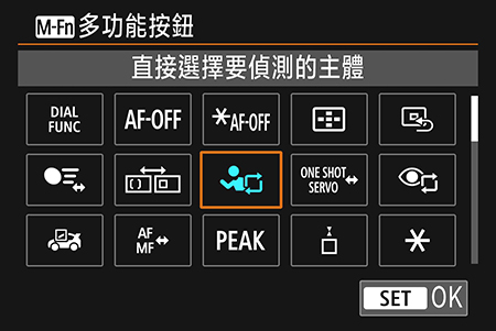- 指定一個按鈕,將焦點轉移到偵測到的主體上,即使其在您所設定的自動對焦區域之外。