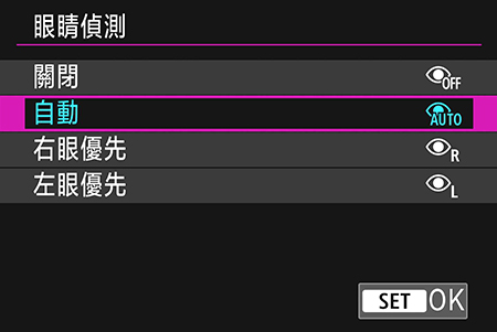 敬請深入瞭解:眼睛偵測只有在主體偵測啟用時才會發生作用