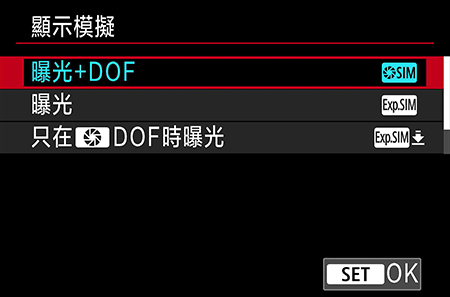 注意事項:曝光模擬將無法套用