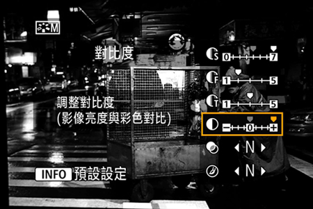 按下 INFO 按鈕以操控對比度。