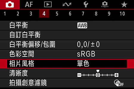 如何設定「相片風格:單色」