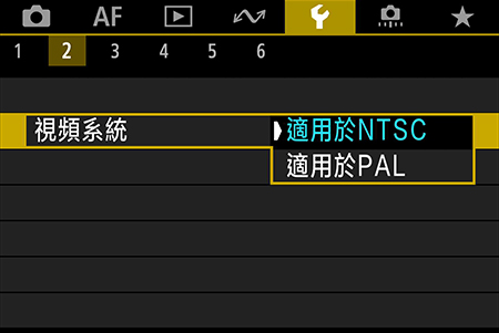 如果您沒有看到想要的幀率選項,請查看黃色功能表中的影片系統設定。「NTSC 格式」(美國國家電視系統委員會(National Television System Committee,縮寫為NTSC)可為您「解鎖」更高幀率。但前提條件是,您所拍攝的影片不會用於電視廣播或在投影儀上播放!