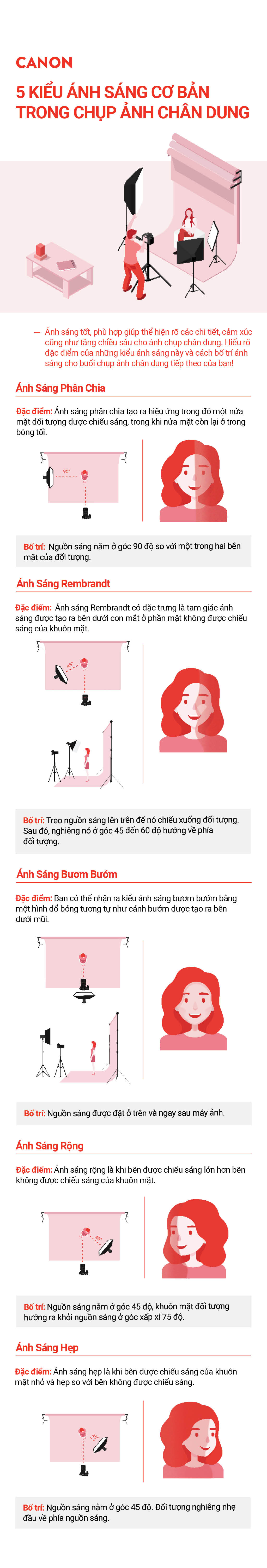 Ánh sáng tốt, phù hợp giúp thể hiện rõ các chi tiết, cảm xúc cũng như tăng chiều sâu cho ảnh chụp chân dung. Nếu bạn mới bắt đầu chụp ảnh người và đang tìm kiếm các mẹo và lời khuyên để có được bức ảnh tuyệt vời, hãy tham thảo 5 kiểu ánh sáng dễ sàng sau đây. Tải xuống tranh thông tin hữu ích dưới đây và đọc toàn bộ bài viết mà trong đó chúng tôi chia sẻ về đặc điểm của các kiểu ánh sáng, hiệu ứng tâm trạng mà nó mang lại cũng như cách bố trí cơ bản.