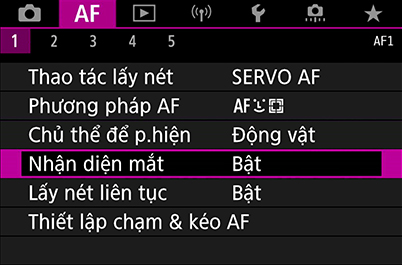 Bước 1: Trong trình đơn AF, hãy tìm hạng mục này: