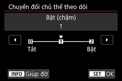 Thiết lập hữu ích 2: Servo AF characteristic – ‘Accel./decel. Tracking’ đến +1 hoặc +2