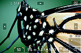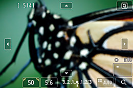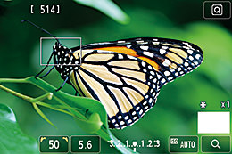 Sử dụng chức năng phóng to Live View, bạn có thể di chuyển khung phóng to đến tiêu điểm mong muốn và phóng lớn vùng đó. Trên EOS 5DS, có thể phóng to ảnh lên tối đa 16 lần.