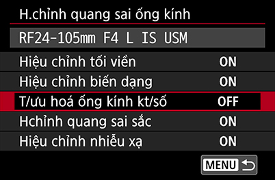 - Trên hệ thống EOS R, ‘Peripheral illumination correction’ được cài đặt thành ‘On’ theo mặc định. Nên bật nó trong phần lớn trường hợp, trừ khi bạn muốn có hiệu ứng tối góc vì lý do nghệ thuật hoặc sử dụng các ống kính bên thứ ba.