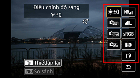2. Các tùy chọn ở bên phải cho phép bạn thực hiện những điều chỉnh cơ bản, như điều chỉnh độ sáng, cân bằng trắng, tham số Picture Style, v.v.