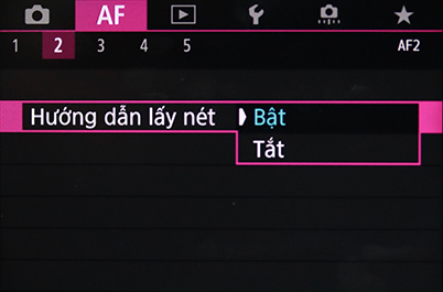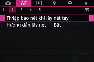 Trên máy ảnh EOS R, EOS R5 và EOS R6, bạn có thể tìm thấy MF peaking và Focus Guide trong trình đơn AF Menu 2.