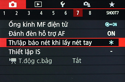 Trên các máy ảnh không có tab trình đơn AF, bạn có thể tìm thấy chức năng MF peaking trong trình đơn SHOOT. Trên EOS M50, nó nằm trong trình đơn SHOOT Menu 7.