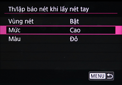 Có 3 màu peaking cho bạn chọn: đỏ, vàng và xanh dương. Chọn một màu dễ nhìn thấy so với đối tượng.