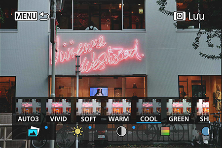 Bạn cũng có thể áp dụng các hiệu ứng AUTO mà máy ảnh đề xuất dựa trên các điều kiện hình ảnh.