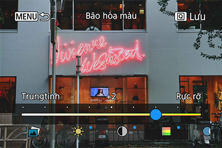 Tăng độ bão hòa làm cho bảng hiệu neon sống động hơn.
