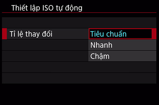 Khi độ nhạy sáng ISO được đặt thành [Auto (Tự Động)], bạn có thể cài đặt phạm vi thay đổi thành "Standard", "Fast" hoặc "Slow" một cách đơn giản và trực quan.