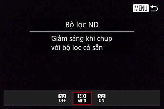 Một kính lọc ND hiệu quả đã được tích hợp vào máy ảnh dành cho những lúc bạn muốn chụp với khẩu độ tối đa hoặc để chụp phơi sáng lâu. Khi sử dụng thông thường, bạn sẽ có thể cài đặt chức năng này thành chế độ Auto mà không gặp bất kỳ vấn đề gì.
