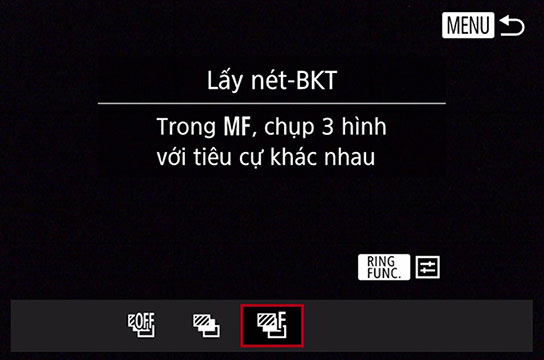 Chức năng Bracketing cũng gồm có chức năng Focus Bracketing thay đổi vị trí tiêu điểm khi chụp liên tục với lấy nét thủ công.