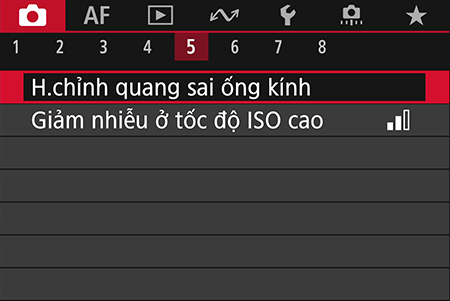 Bước 1: Với máy ảnh ở chế độ Video, hãy vào “Lens aberration correction” trong trình đơn màu đỏ