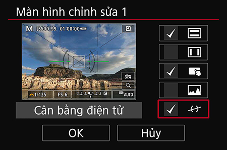 Bước 4: Chạm vào hoặc nhấn nút “Set” để đánh dấu vào ô bên cạnh biểu tượng cân bằng điện tử.