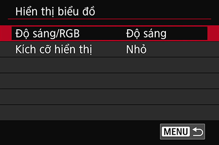 Trình Đơn “Histogram disp.” cho phép bạn thay đổi kích thước biểu đồ và hiển thị biểu đồ RGB.