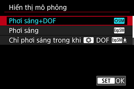 Kỹ thuật: Thay đổi chế độ mô phỏng hiển thị thành ‘Exposure + DOF’