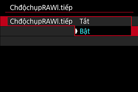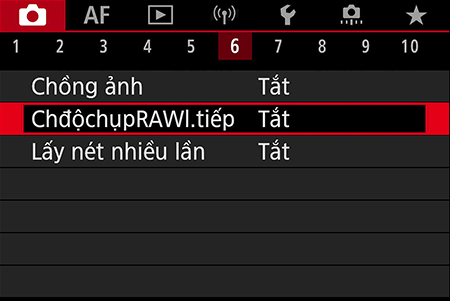 Tìm trí và chọn “RAW burst mode” trong trình đơn SHOOT (màu đỏ). Số tab tùy vào mẫu máy ảnh.