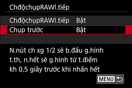 Một khi chế độ RAW burst được bật, chức năng pre-shooting sẽ khả dụng. Chọn nó để kích hoạt.