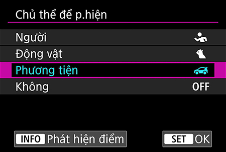 Xe GT: 1-point AF, tắt tính năng phát hiện đối tượng