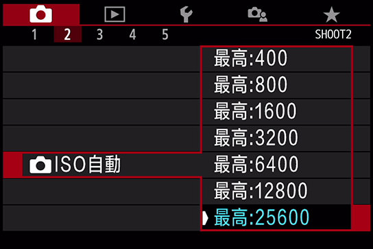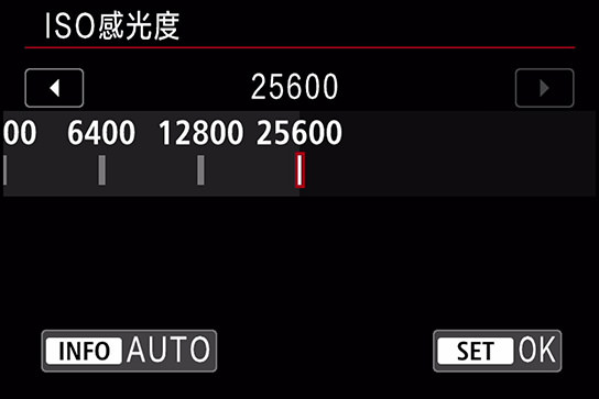 您可在ISO自動模式中設置高達ISO 25600的ISO感光度。