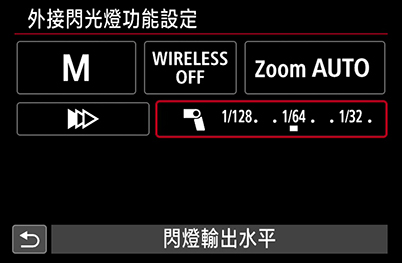 也可以選擇「外接閃光燈功能設定」(External flash func. setting)來控制閃光燈的輸出。