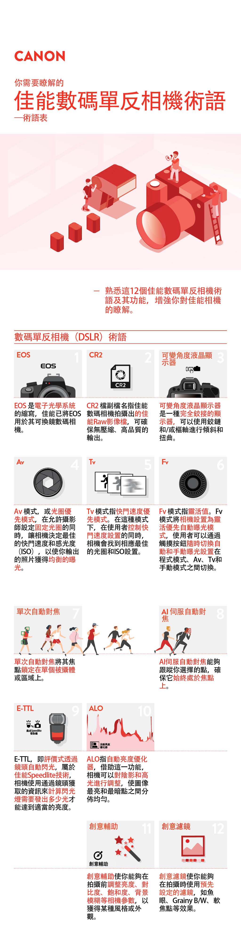 如果你並不是很熟悉這12個專業術語及其各自在佳能相機中的功能,不要感到懊惱。每個人都是從頭學起的。下面這幅有關佳能相機術語的便捷資訊圖表會説明你解決問題!