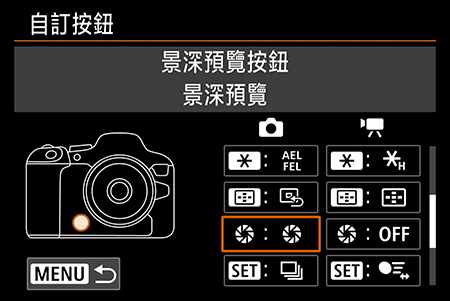 從清單中選擇要作為「景深預覽」快速鍵的按鈕,並進行對應設定。