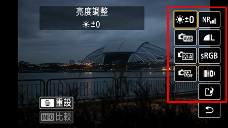 當場就想調好自己的照片嗎?相機內就能進行基本的 RAW 格式文件後製處理哦!