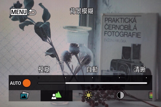 您在「背景模糊」選單中越是向「模糊」一端調整背景模糊的級別,對焦範圍就越窄,從而使聚焦對象前後的光源看起來像是散景圈。